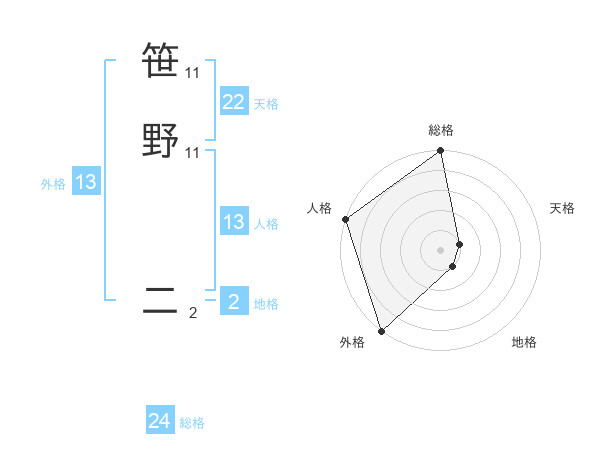 笹野 二さんの外格は13画の5点!