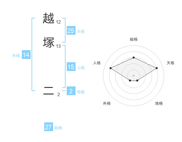 越塚 二さんを姓名の画数から五運を鑑定