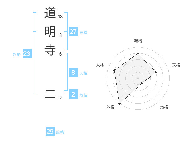 道明寺 二さんの総格は29画の4点!