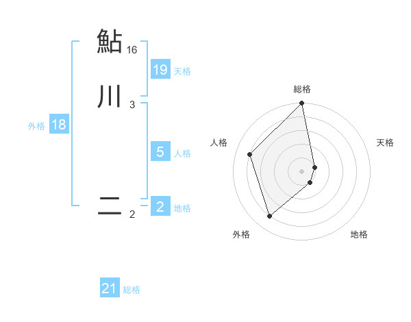 鮎川 二さんの総格は21画の5点!