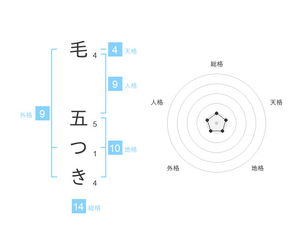 毛 五つきさんの総格は14画の1点!