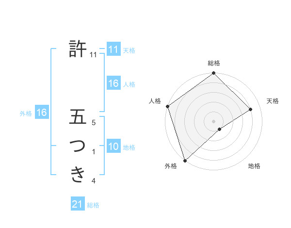 許 五つきさんの総格は21画の5点!