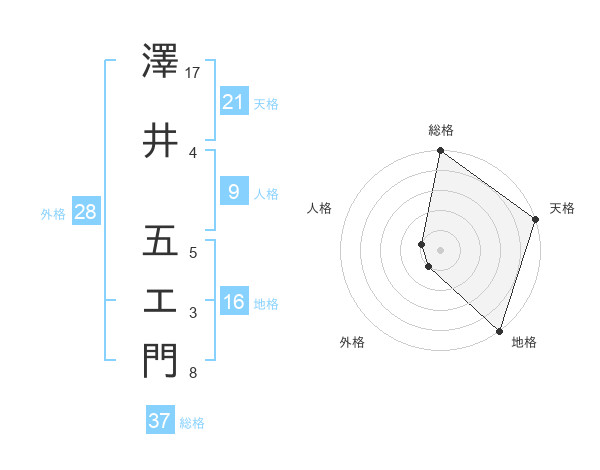 澤井 五エ門さんを姓名の画数から五運を鑑定