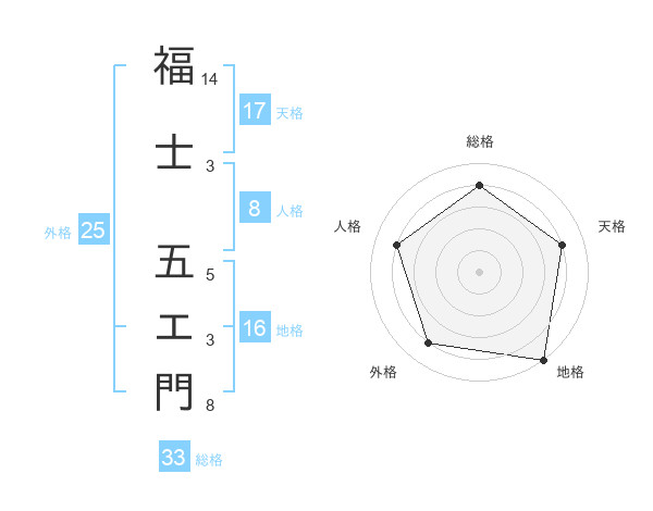 福士 五エ門さんを姓名の画数から五運を鑑定