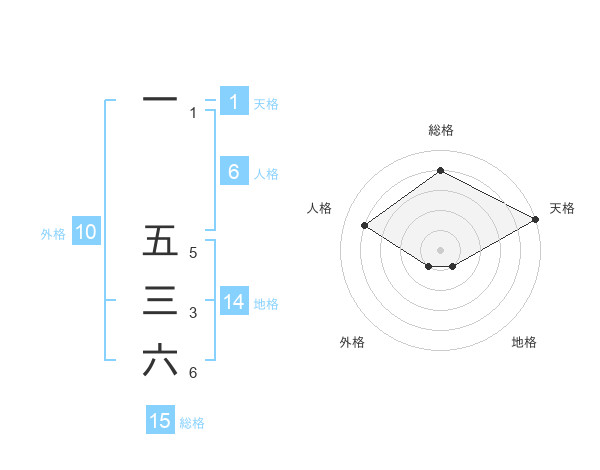 一 五三六さんの総格は15画の4点!