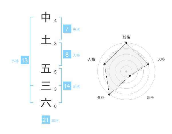 中土 五三六さんの総格は21画の5点!