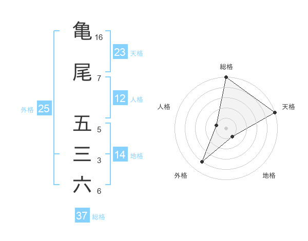 亀尾 五三六さんを姓名の画数から五運を鑑定