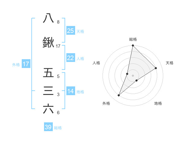 八鍬 五三六さんを姓名の画数から五運を鑑定