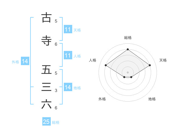 古寺 五三六さんを姓名の画数から五運を鑑定