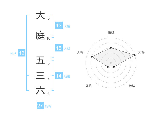 大庭 五三六さんを姓名の画数から五運を鑑定