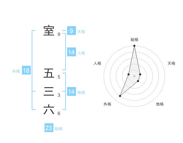 室 五三六さんの総格は23画の5点!