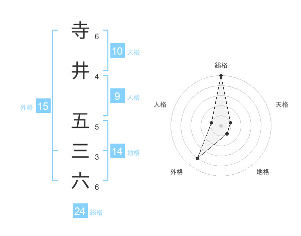 寺井 五三六さんの総格は24画の5点!