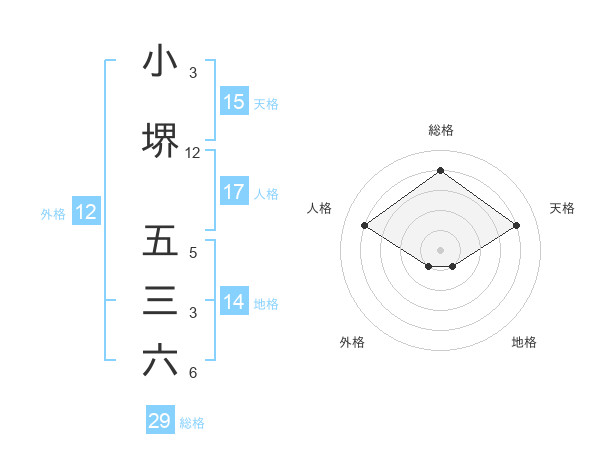 小堺 五三六さんを姓名の画数から五運を鑑定