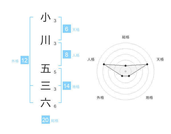 小川 五三六さんの総格は20画の1点!