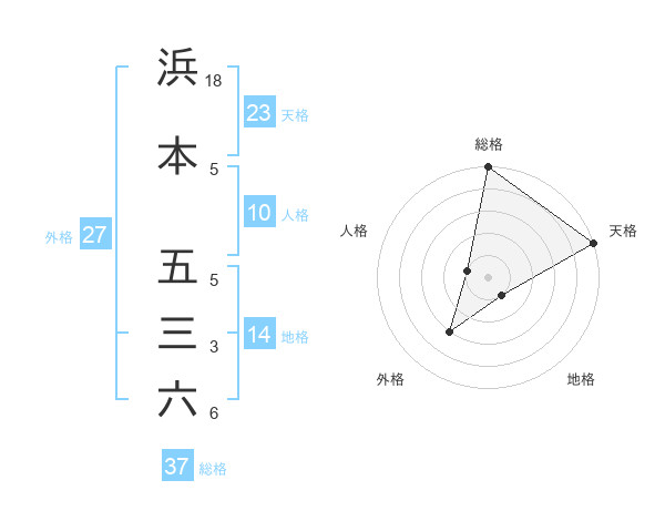 浜本 五三六さんの総格は37画の5点!