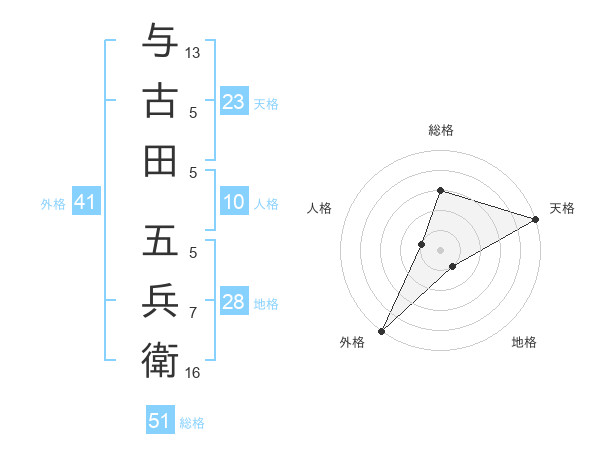 与古田 五兵衛さんを姓名の画数から五運を鑑定