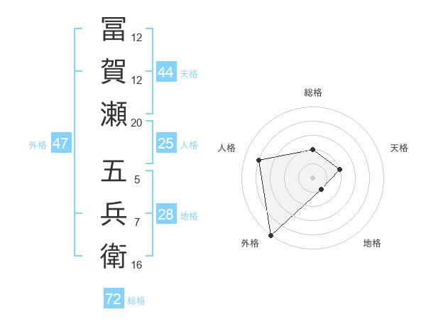 冨賀瀬 五兵衛さんの外格は47画の5点!