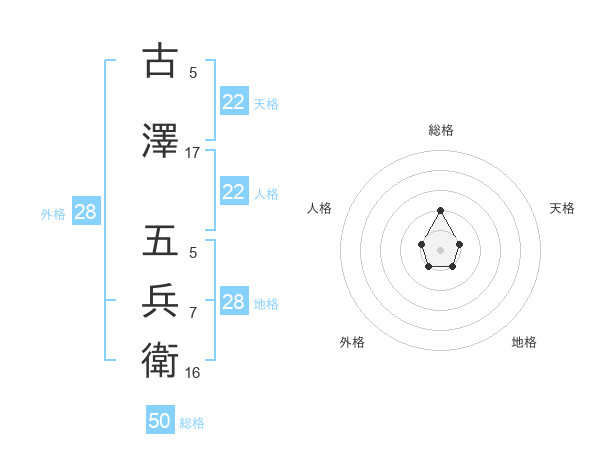 古澤 五兵衛さんの天格は22画の1点!