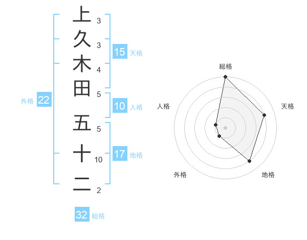 上久木田 五十二さんの総格は32画の5点
