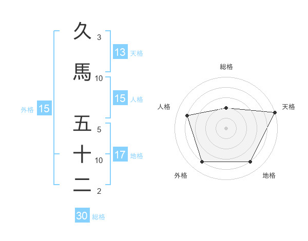 久馬 五十二さんの人格は15画の4点!