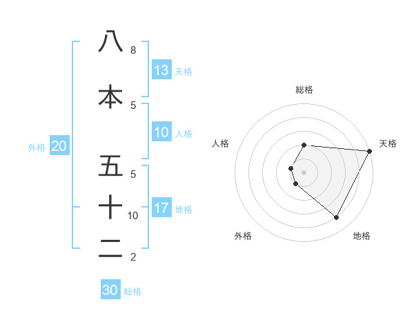 八本 五十二さんの総格は30画の2点!