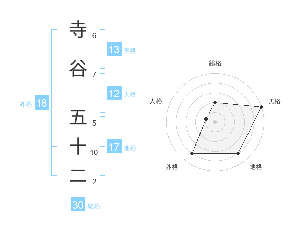 寺谷 五十二さんを姓名の画数から五運を鑑定