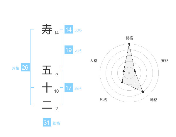 寿 五十二さんの総格は31画の5点!