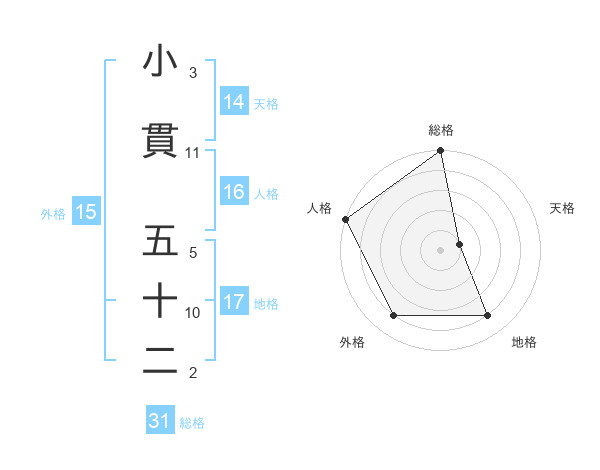 小貫 五十二さんを姓名の画数から五運を鑑定