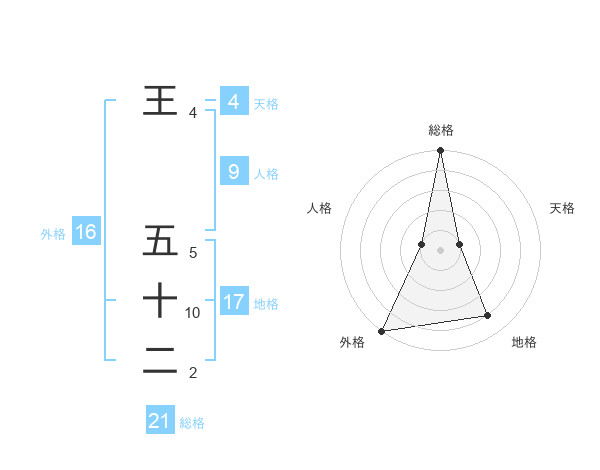 王 五十二さんの総格は21画の5点!