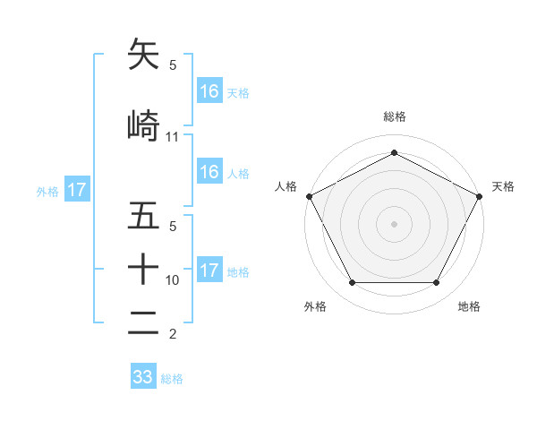 矢崎 五十二さんを姓名の画数から五運を鑑定