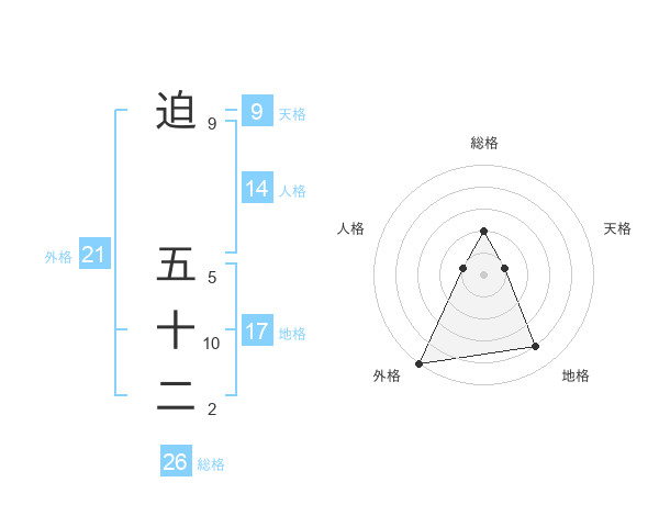 迫 五十二さんの外格は21画の5点!