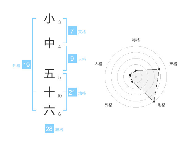 小中 五十六さんの地格は21画の5点!