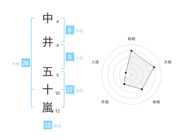 中井 五十嵐さんの総格は35画の4点!