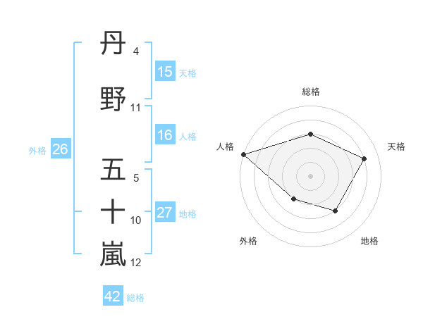 丹野 五十嵐さんを姓名の画数から五運を鑑定