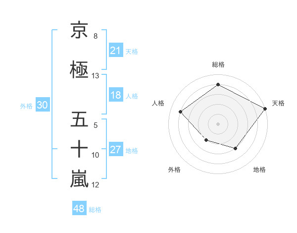 京極 五十嵐さんの総格は48画の4点!
