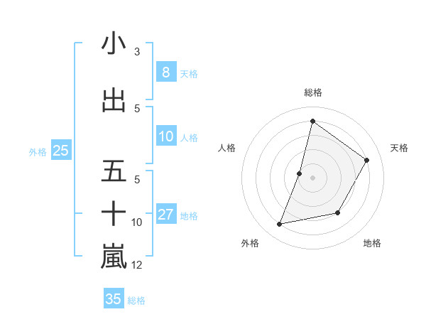 小出 五十嵐さんの総格は35画の4点!