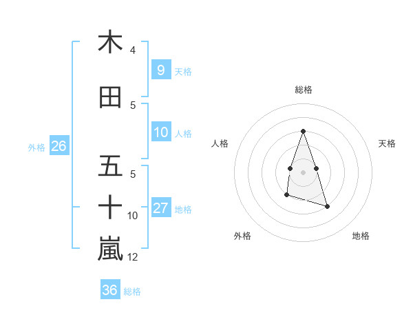 木田 五十嵐さんを姓名の画数から五運を鑑定