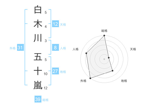 白木川 五十嵐さんの総格は39画の5点!