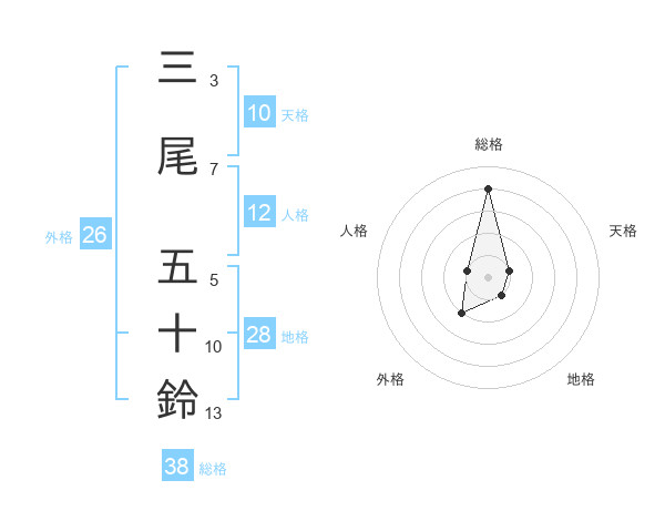 三尾 五十鈴さんを姓名の画数から五運を鑑定