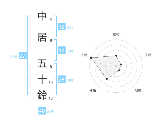 中居 五十鈴さんの総格は40画の2点!