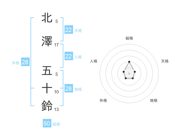 北澤 五十鈴さんの総格は50画の2点!
