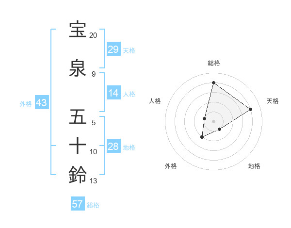 宝泉 五十鈴さんを姓名の画数から五運を鑑定