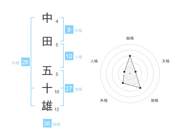 中田 五十雄さんを姓名の画数から五運を鑑定