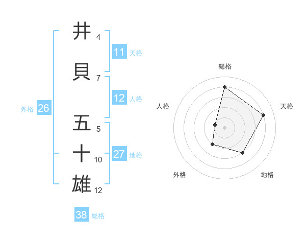 井貝 五十雄さんを姓名の画数から五運を鑑定