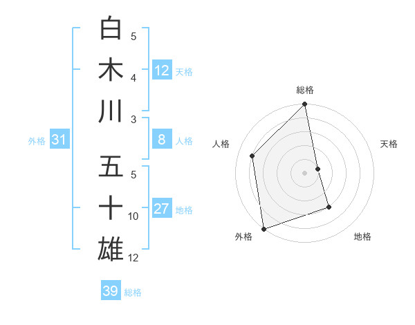 白木川 五十雄さんを姓名の画数から五運を鑑定