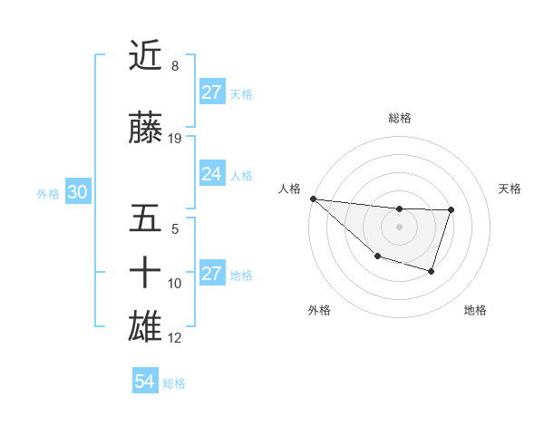 近藤 五十雄さんを姓名の画数から五運を鑑定