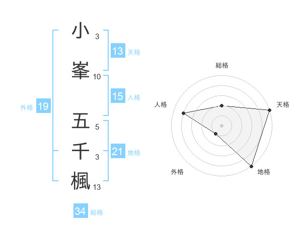 小峯 五千楓さんの天格は13画の5点!