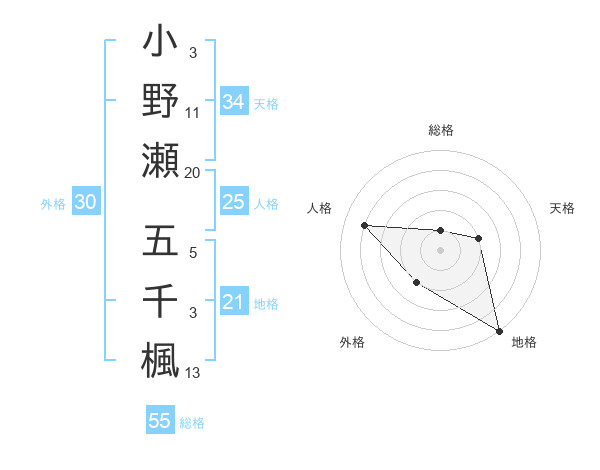 小野瀬 五千楓さんの外格は30画の2点!