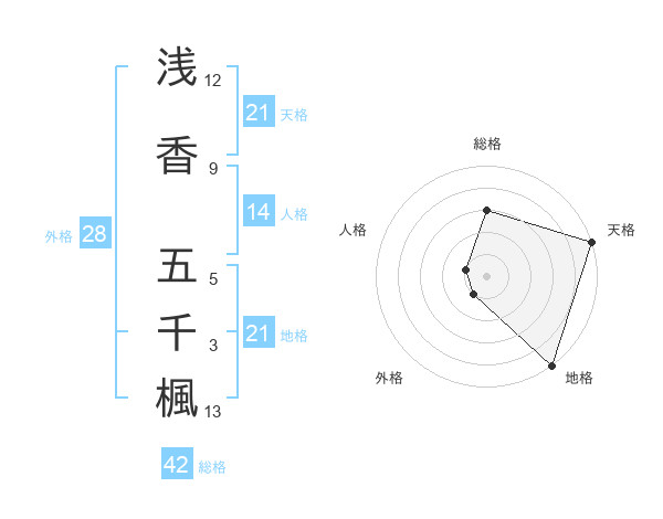 浅香 五千楓さんを姓名の画数から五運を鑑定