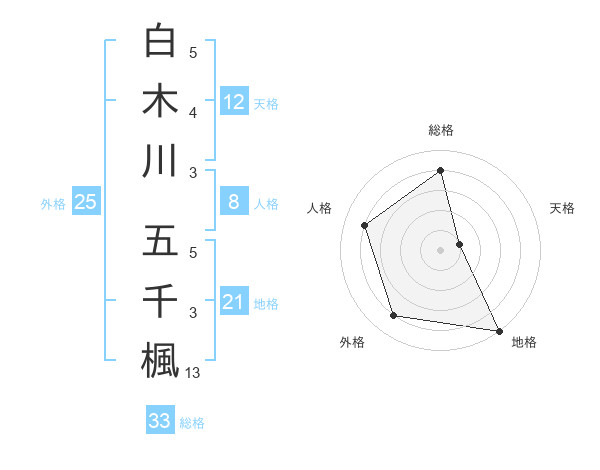 白木川 五千楓さんの総格は33画の4点!